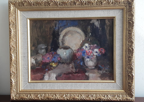 Tableau Nature morte, huile/carton, Marcelle Blum Ecole Belge, Still-life Painting