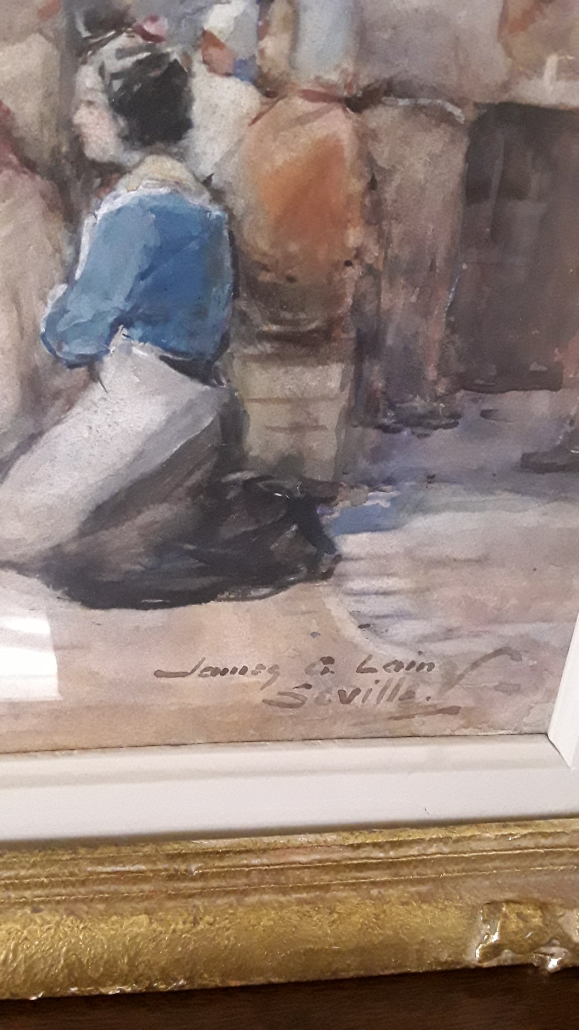 Watercolour signed power right and tiled Sevilla, "A Spanish market" on the back. Dimensions : Frame 55 x 45 cm, visible 45 x 34.5 cm
