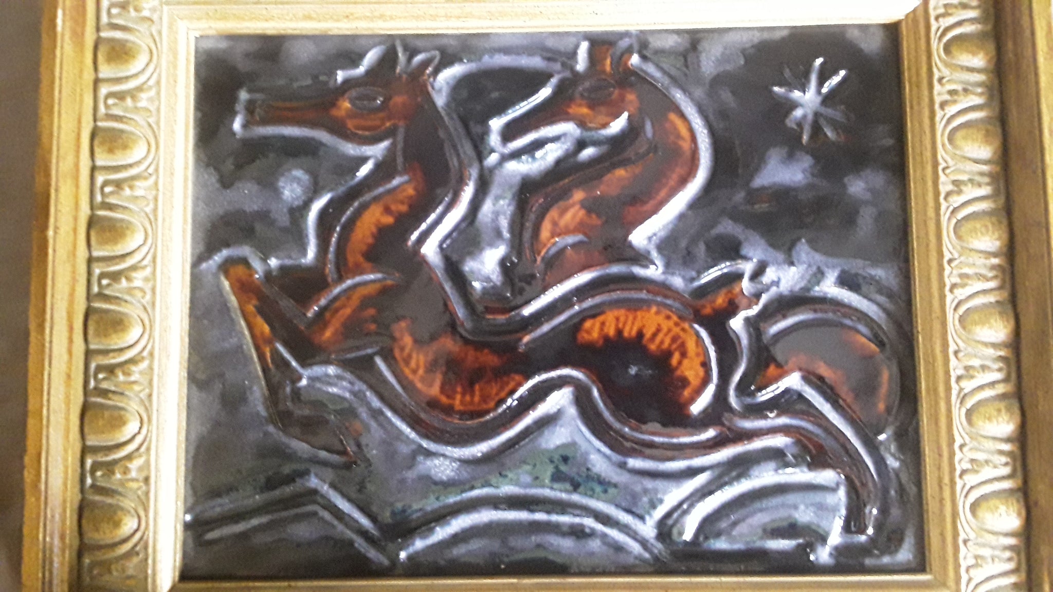 Beautiful ceramic plaque representin two horses galoping by the great artist Manfredo Borsi (Florence, 1900 / Paris, 1967 - burried in St Paul de Vence). Unique piece. Ceramic. In very good condition.